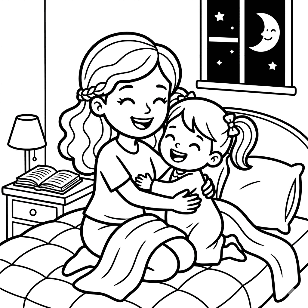 Celebrate the special bond with 8 heartwarming mother-daughter hug coloring pages — bedtime snuggles, garden walks, park hugs, and tender moments. Download, print, or color online instantly. No signup required!