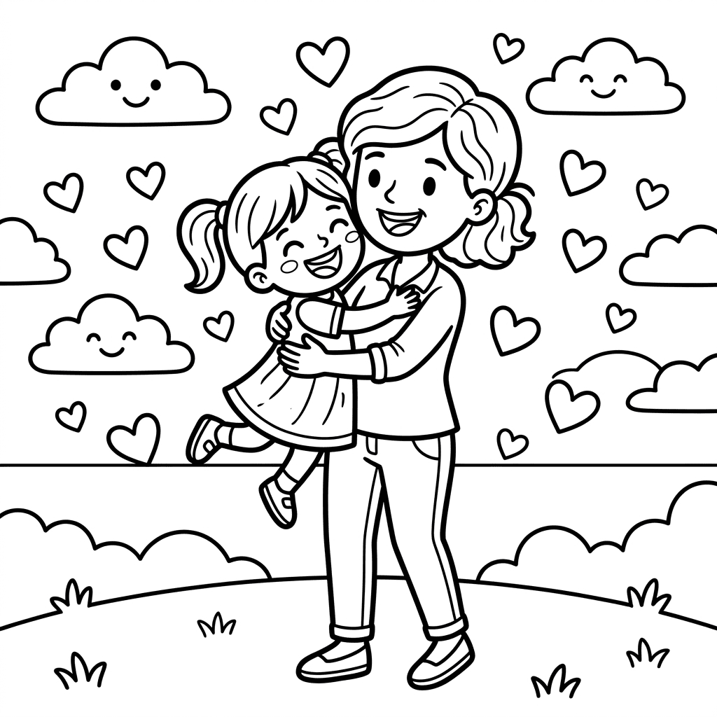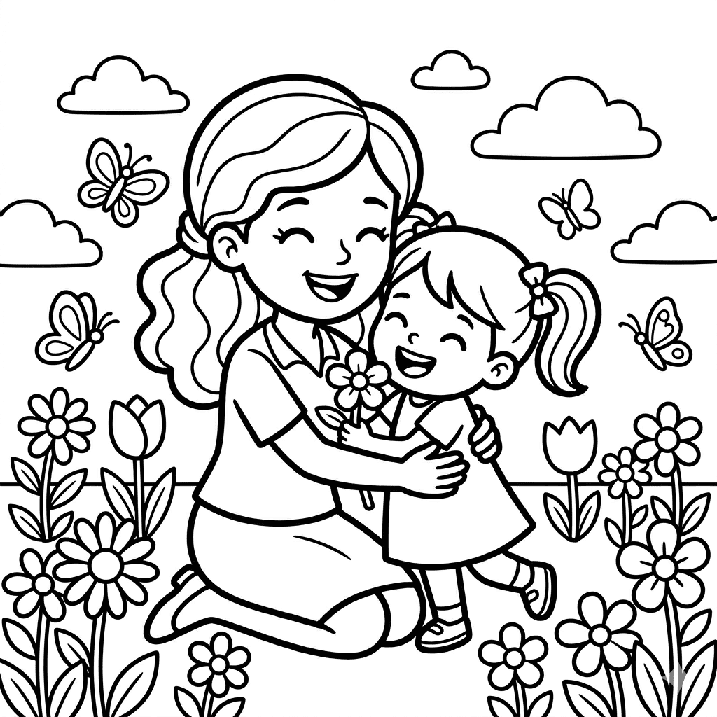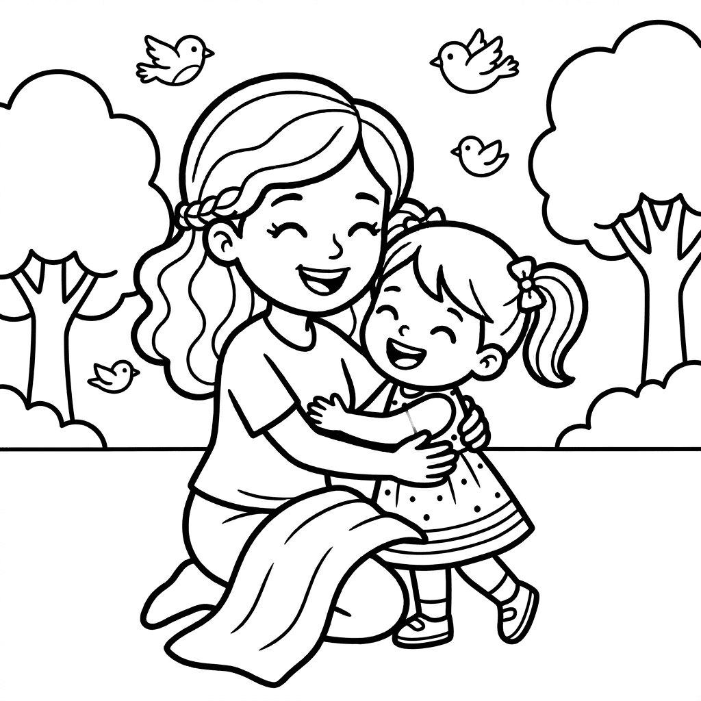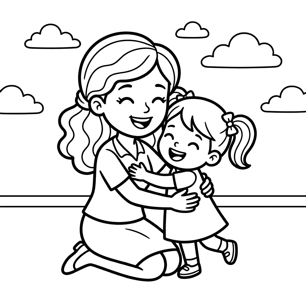 Our mother-daughter hug coloring pages capture loving moments between mom and child. These free printable sheets are perfect for Mother's Day, family bonding activities, or simply celebrating the love you share. Each page is high-resolution and ready to print on US Letter or A4. Click any image to color online or download PDF.